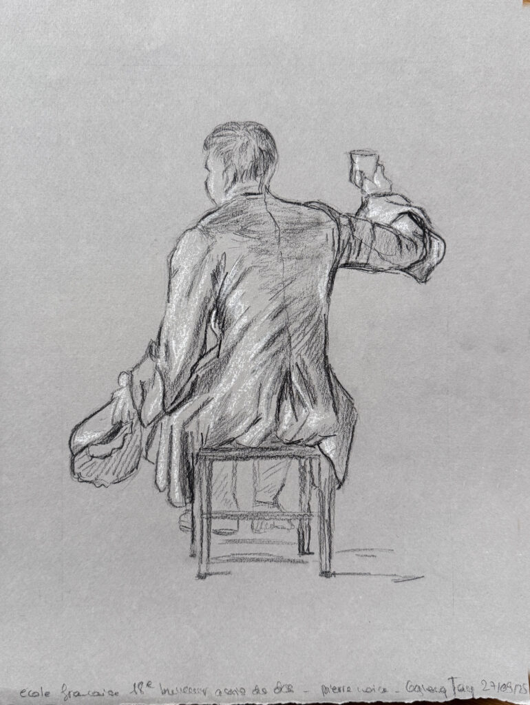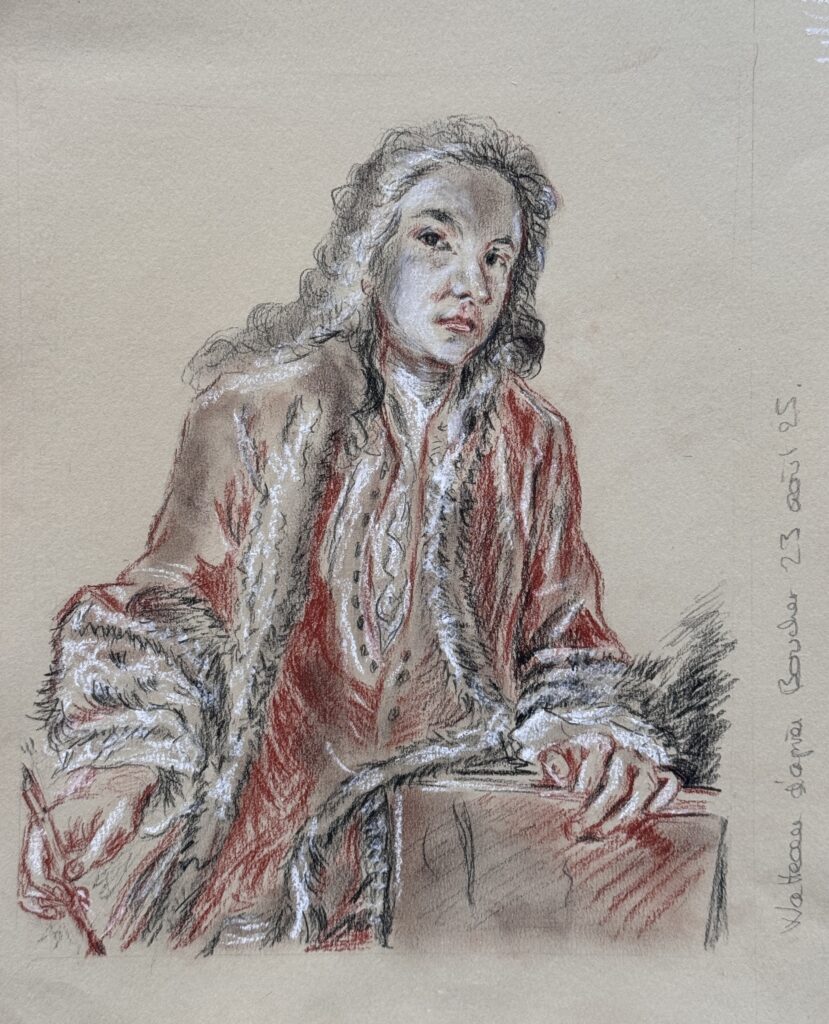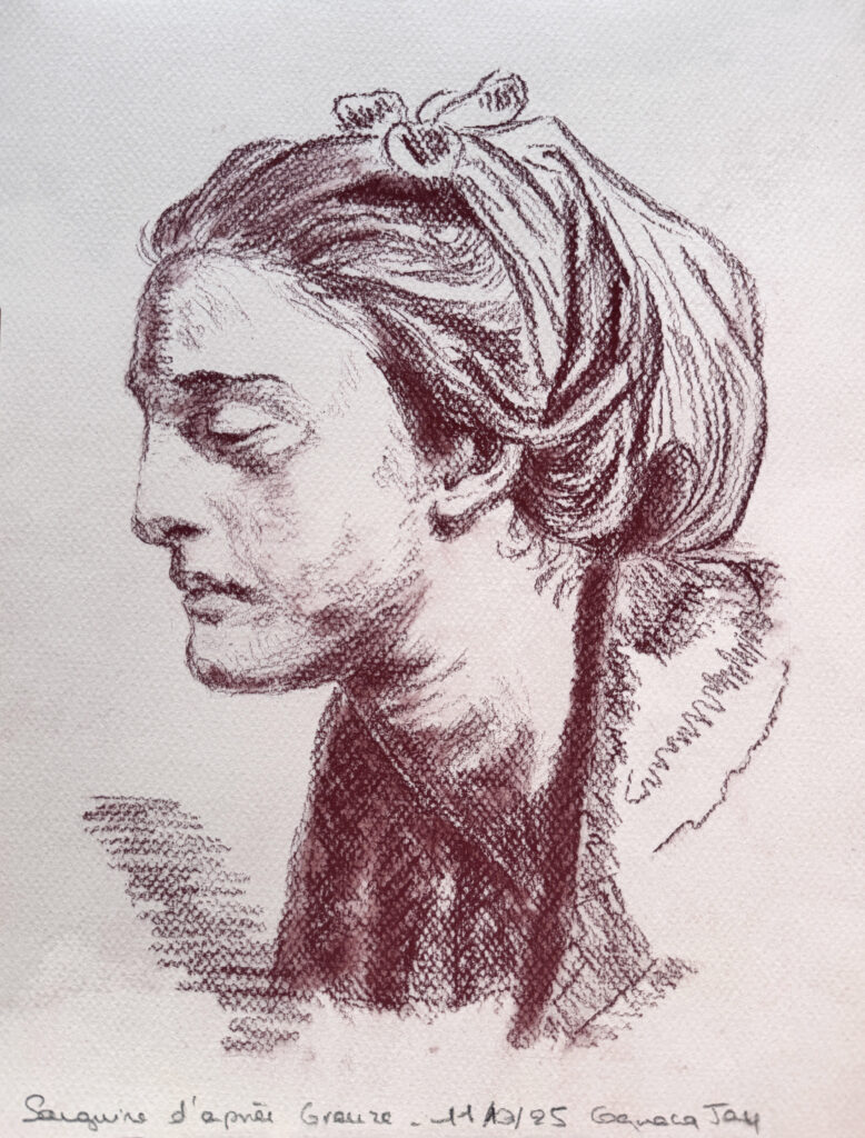 20251206 Guerrier Pastel20251115 Falaises Etretat de ? Huile20251024 Plume et encre Ecole du Nord20251024 Plume et encre d’après JL Jerome vendeur d’armes ambulant20251024 Plume et encre d’après Gilles Neyts20251011 Sanguine d’après Greuze20251011 Enfant Sanguine20250927 homme assis Ecole Française XVIIIe Pierre noire20250927 Aigle Pierre noire d’après Oudry20250913 Egon Schiele Visage fusain20250823 Homme d’après Boucher 3 crayons20250315 3 crayons Cocnacq Jay de ?Huile d’après Lawrence (détail)- Cognacq Jay Juillet 2025Pastel d’après Paul Vogler – Cognacq Jay Juin 2025Sanguine d’après Boucher Cognacq Jay – mai 2025Sanguine d’après Hubert Robert – Cognacq Jay, Mai 2025Pastel d’après Henry Deshays – Cognacq Jay Mars 2025Pastel d’après Millet, mars 2025Pierre Noire, d’après Boucher, janvier 2025Fusain d’après Toulouse-Lautrec, la ravaudeuse, 1882 – janvier 2025